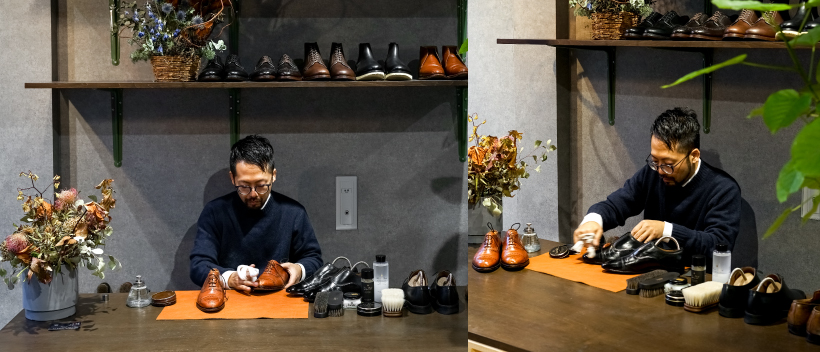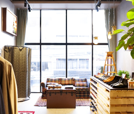 南船場店は、鞄ブランド「FIVE WOODS」直営店の2Fに併設された
